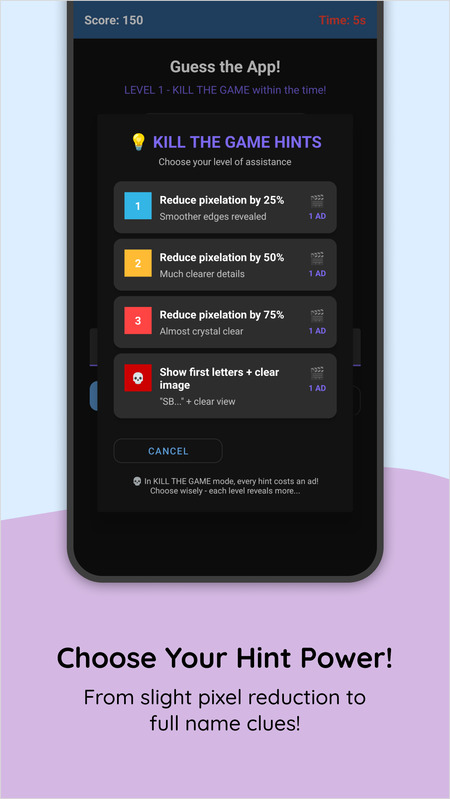 Game Killer APK is a puzzle app for Android that turns your app icons into distorted images for you to guess their original names. It’s a light, brain-teasing game perfect for quick entertainment, no root required.