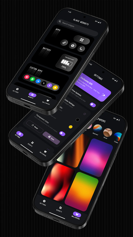 Glass Widgets also includes glass-effect wallpapers, bringing a cohesive look to your device. These backgrounds make widgets stand out and boost the overall aesthetic of your screen, creating a sense of unity and harmony. By using these wallpapers, it’s easy to give your device a distinctive, personalized style.