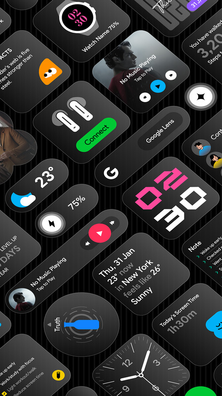 A standout feature of Glass Widgets is the ability to customize the color of each widget. Adjust colors to your preference or to match your phone’s theme for a cohesive, stylish look. This deep level of customization enhances the device’s overall aesthetic, making your phone a statement accessory with a personal touch.