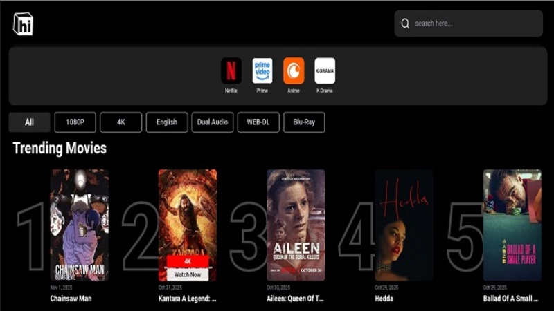 Hicine features a neat, organized interface with well-categorized movie sections. Whether you’re in the mood for action, romance, horror, or anime, you can easily find what you’re looking for. The user-friendly UI ensures you can quickly access and enjoy your favorite films without any hassle.