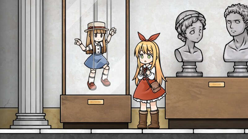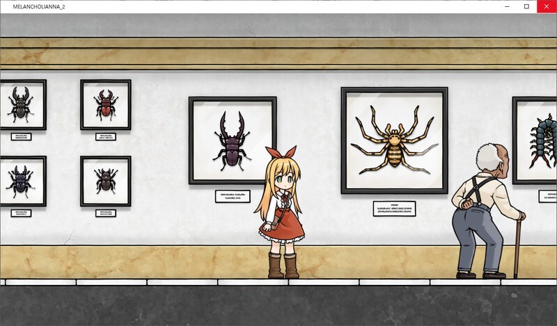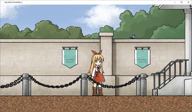 Melancholianna 2 introduces a mirror world with a reversed map, free roaming in the museum, saving through books, and crafting items from the menu. These are major improvements over the previous version.