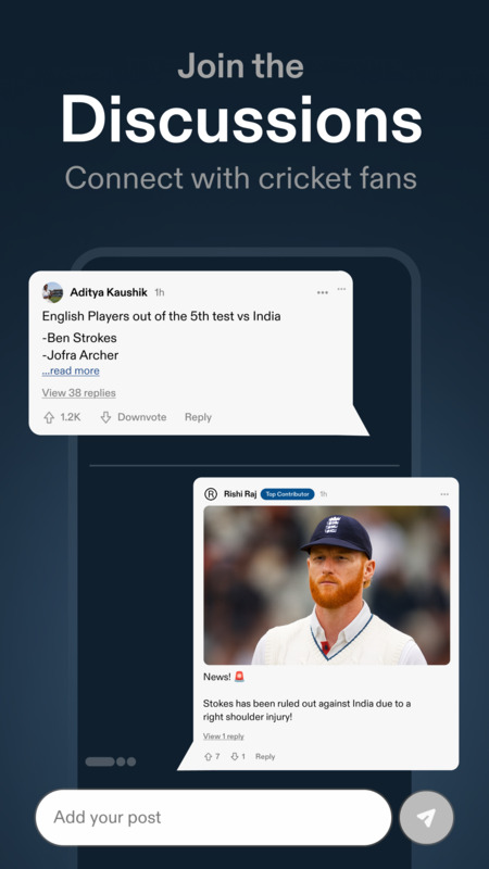 Tham gia cộng đồng CREX APK là cơ hội tốt để bạn trở thành một phần của không gian cricket rộng lớn. Ứng dụng là nơi giao lưu, chia sẻ chiến lược và phân tích liên tục. Khi nhận được thông báo và phân tích mới, người dùng có thể mở rộng kiến thức cricket, đồng thời kết nối với những người có cùng sở thích.