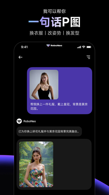 Một trong những tính năng tiêu biểu của RoboNeo là khả năng chỉnh sửa hình ảnh nhanh. Thông qua mô tả đơn giản, bạn có thể thay đổi trang phục hoặc nền của một bức ảnh chỉ sau vài bước đơn giản. Đây là giải pháp tối ưu để bạn có thể tạo ra những bức ảnh sống động mà không cần đến kỹ năng chỉnh sửa chuyên nghiệp.